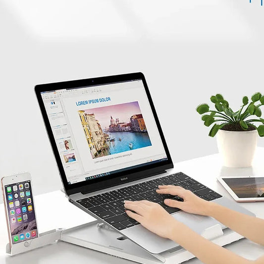 מעמד לפטופ חדש – מתקפל, רב-תכליתי, נייד ומתכוונן לגובה | מתאים גם כמעמד למסך | בסיס מאלומיניום איכותי
